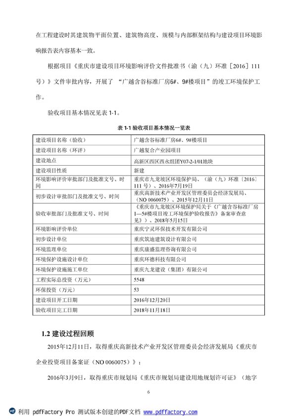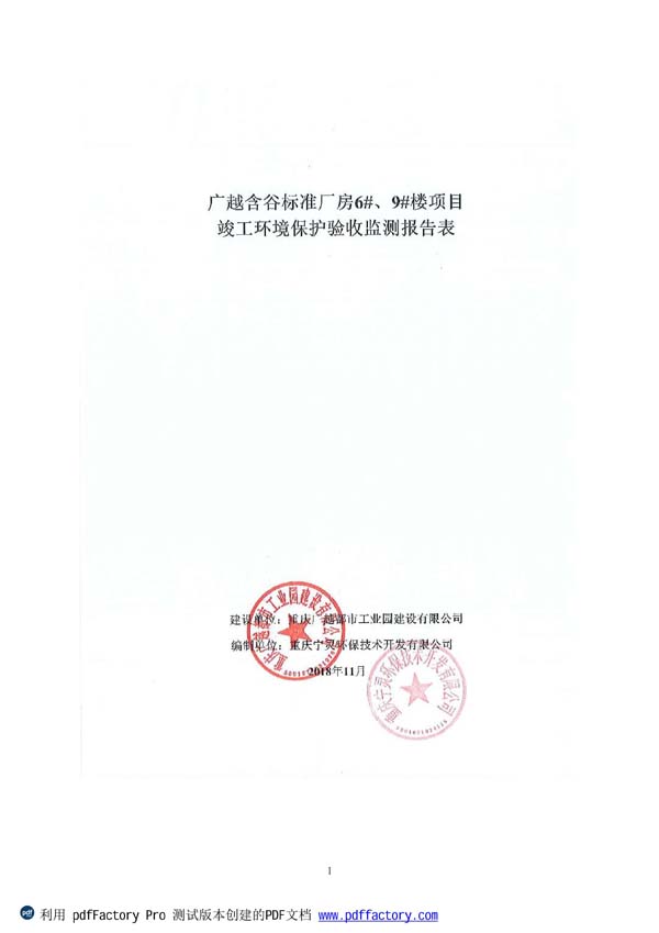 广越含谷标准厂房项目6#、9#楼竣工报告公示